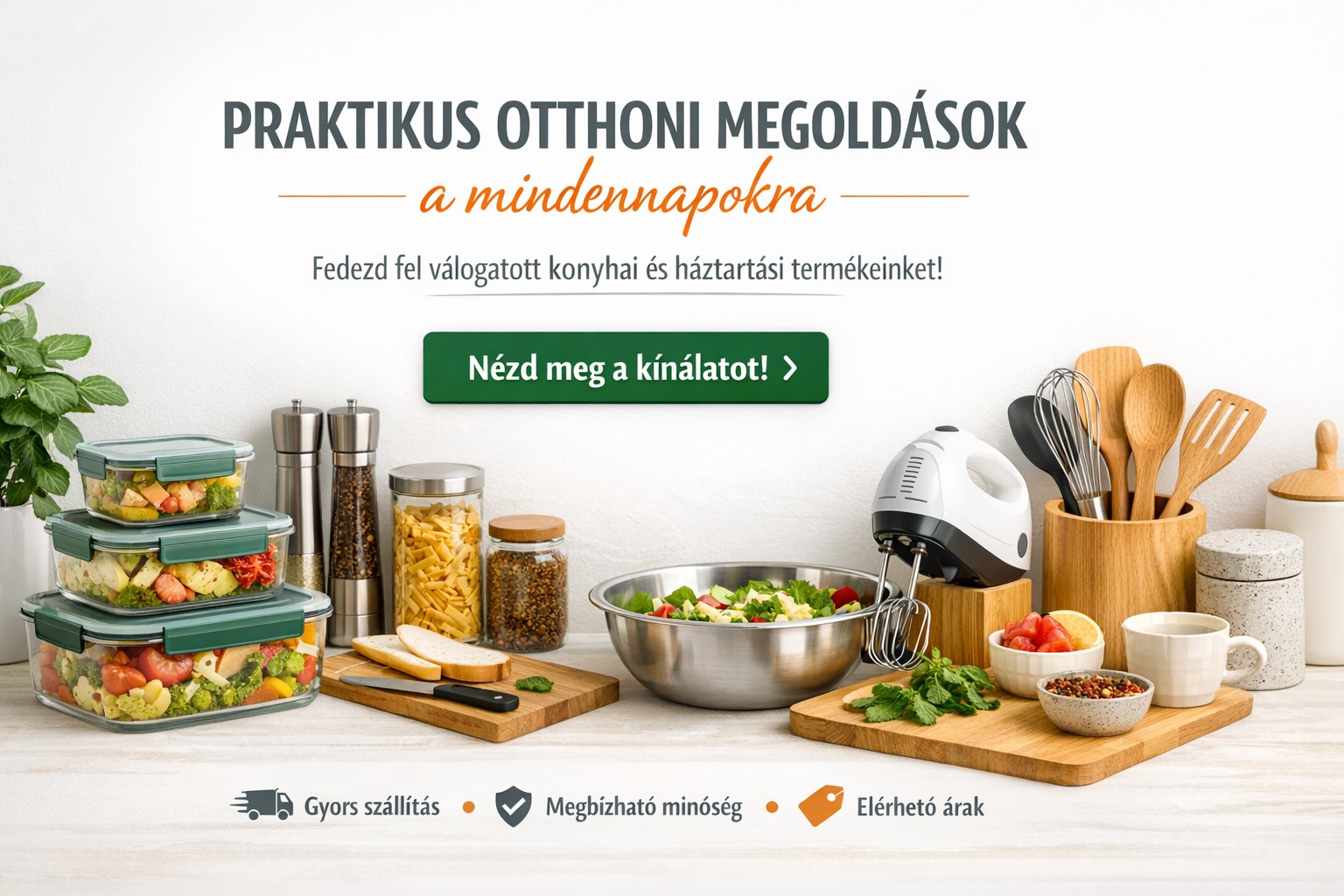 Webáruházunkban olyan konyhai kiegészítőket, tárolási megoldásokat, fürdőszobai eszközöket és otthoni praktikumokat találsz, amelyek valóban megkönnyítik a mindennapokat – legyen szó rendszerezésről, főzésről vagy az otthon kényelmesebbé tételéről.