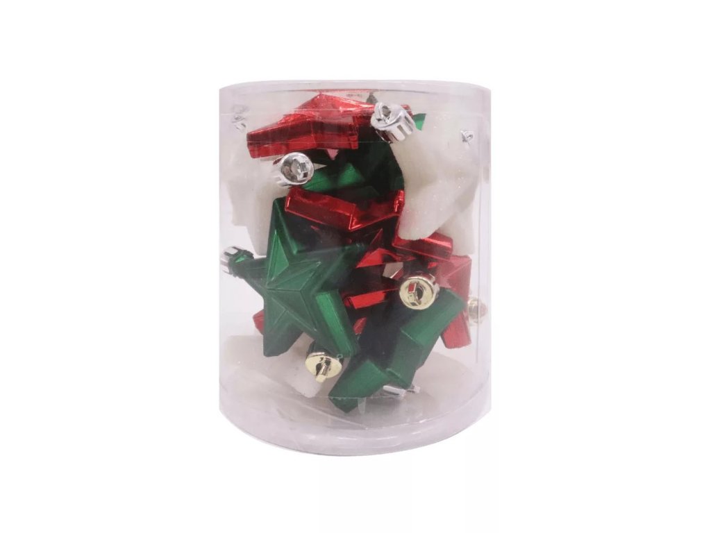 Noelle zöld-fehér-piros csillag karácsonyfadíszek – 15 db-os szett #CHRISTMAS# klasszikus csillag szett