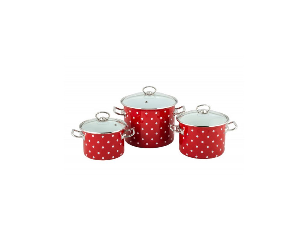 Legyen a főzés élmény ezzel a Happy Cooking piros pöttyös zománcozott fazék szettel! Rendeld meg most! 🛒