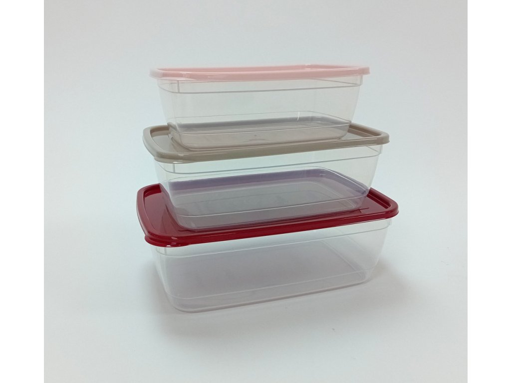 Ételtároló szett 3 részes – 1L / 2L / 3L 3 darabos ételtároló szett jól záródó tetőkkel, különböző méretekben.