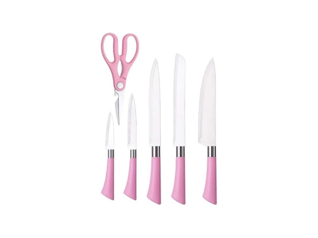 A késkészlet rózsaszín, kék és sárga színben kapható.