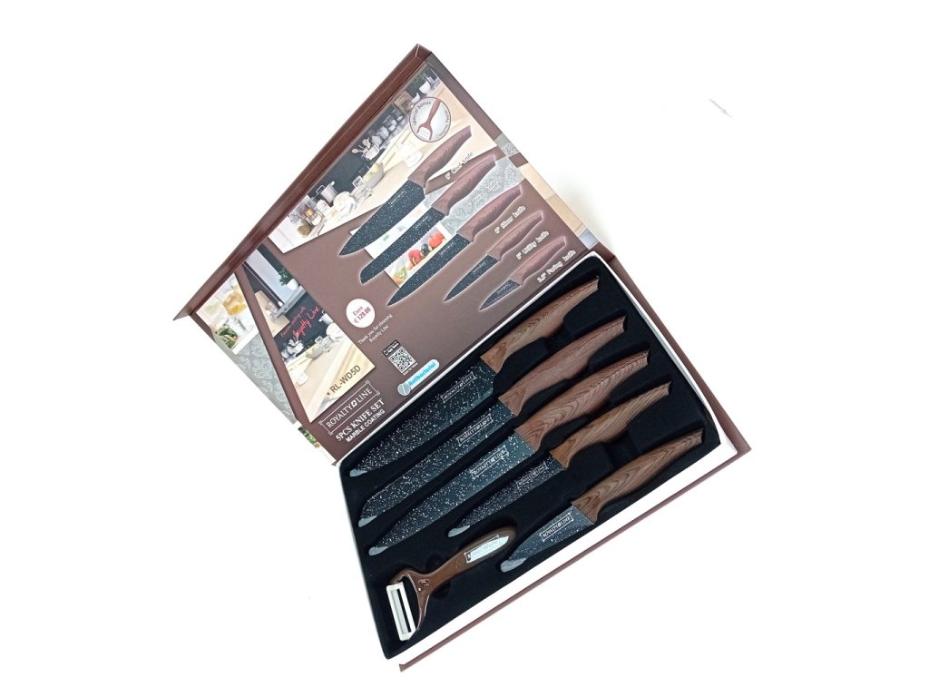 Royalty Line RL-WD5D 6 részes késkészlet Elegáns faerezet mintás markolat – prémium minőség