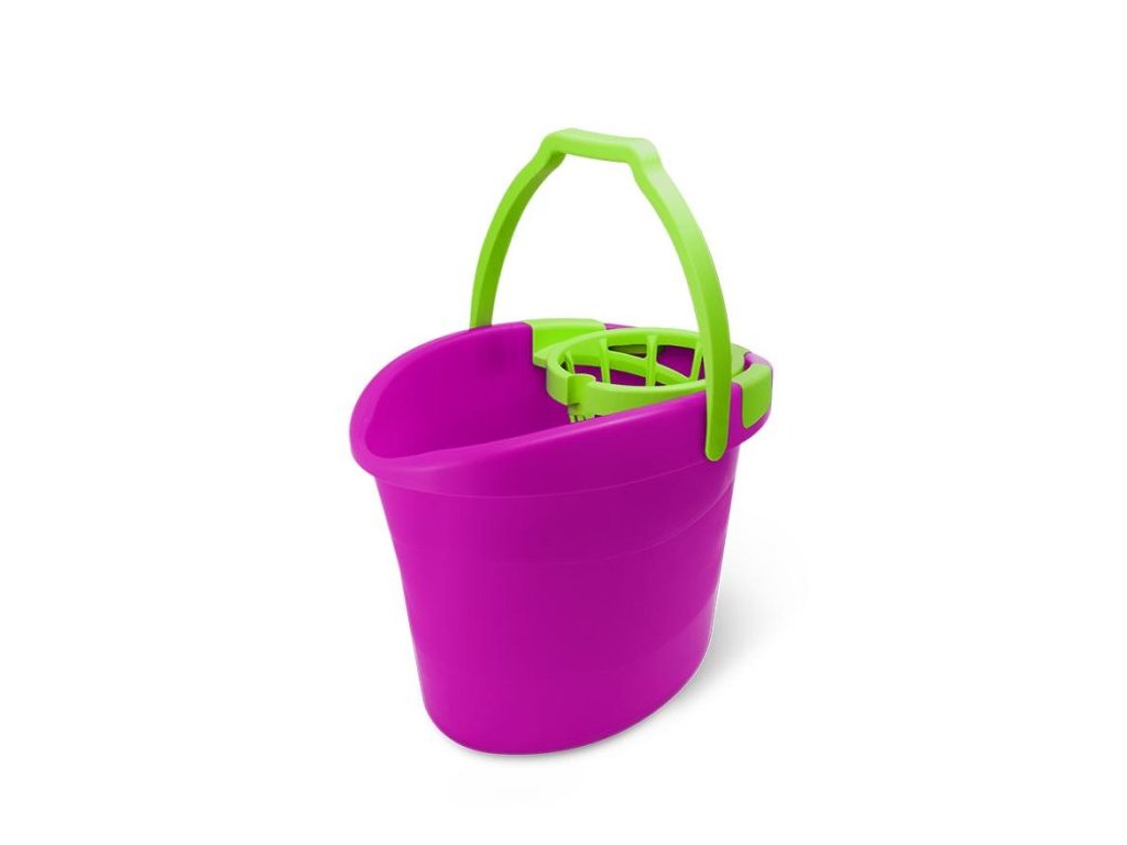 A kényelmes fogantyúval könnyen szállítható, élénk színei (piros, lila-zöld, pink-fehér) pedig vidám hangulatot visznek a takarításba.