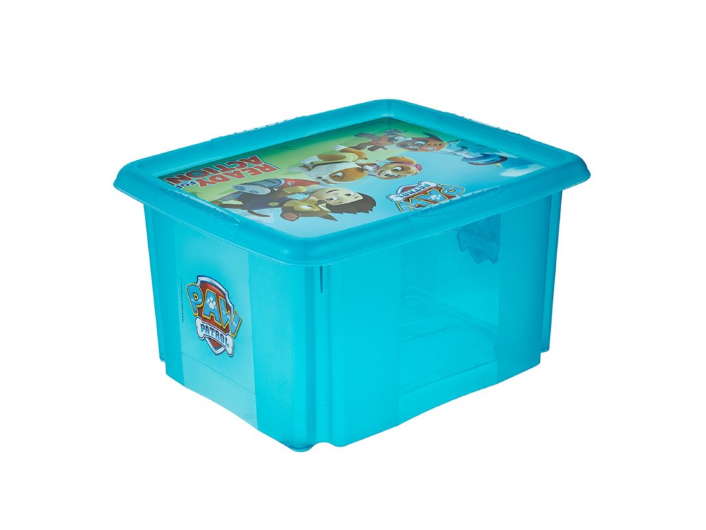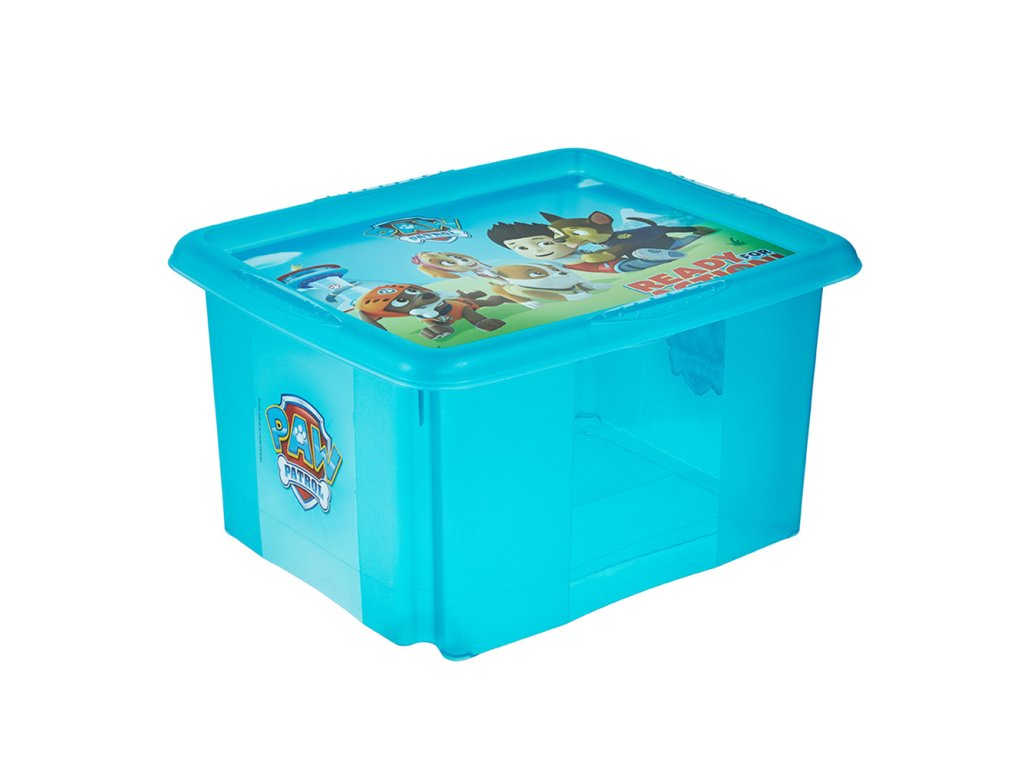 Tároló doboz tetővel 24L – Mancs őrjárat, kék áttetsző #PAWBOX24# gyermek tárolódoboz tetővel, mesefigurás mintával