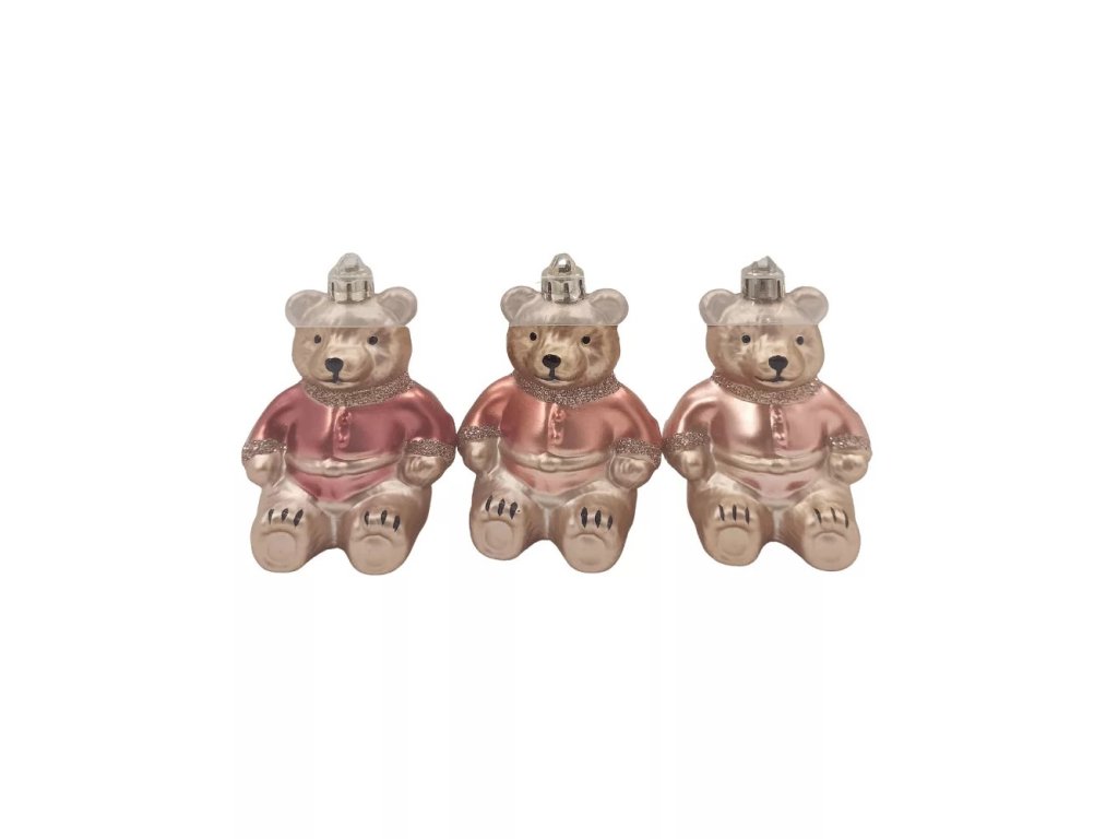 Noelle rózsaszín-arany macik karácsonyfadísz – 3 db-os szett + ajándék + karácsony