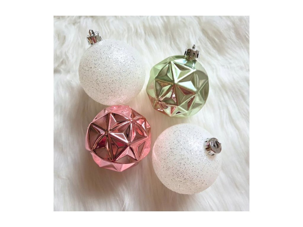 Fehér–zöld–rózsaszín karácsonyi gömbök – 4 db-os szett #PASTELGLOW# karácsony | gömb szett