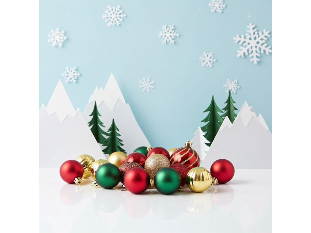 A piros-arany-zöld karácsonyi gömb szett az egyik legnépszerűbb klasszikus karácsonyi kombinációt kínálja.