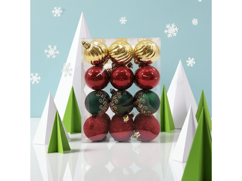Piros-arany-zöld karácsonyi gömbök – 24 db-os szett #CHRISTMASCLASSIC# karácsonyfadísz kollekció