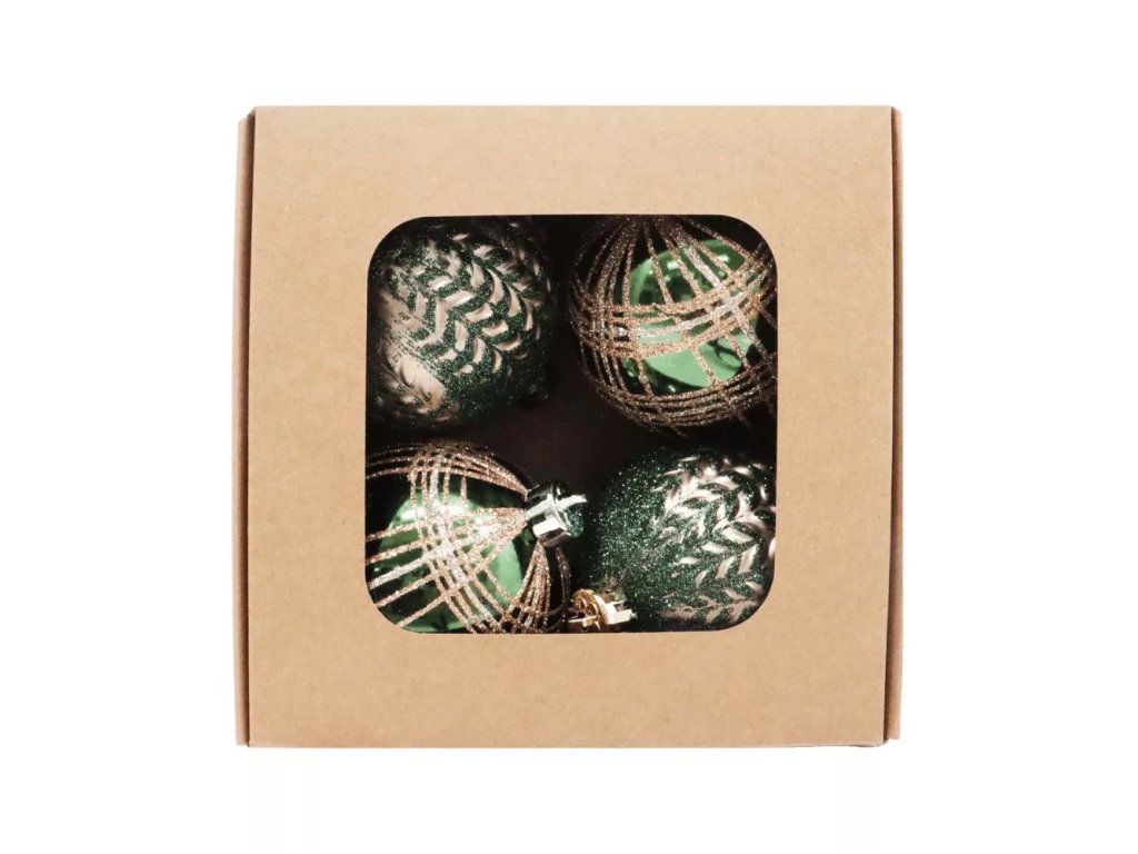 Noelle zöld-arany karácsonyi gömbök – 4 db-os szett #GREEN&GOLD# karácsonyfadísz kollekció