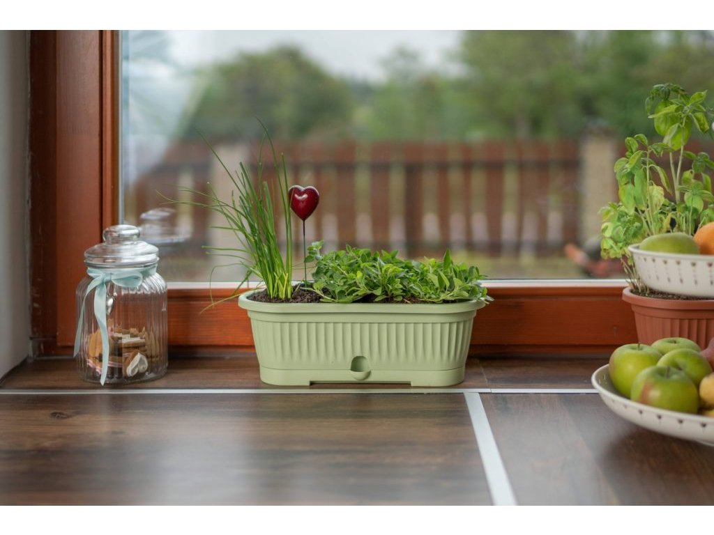 Virágláda alátéttel Verbéna 1,9L olivazöld