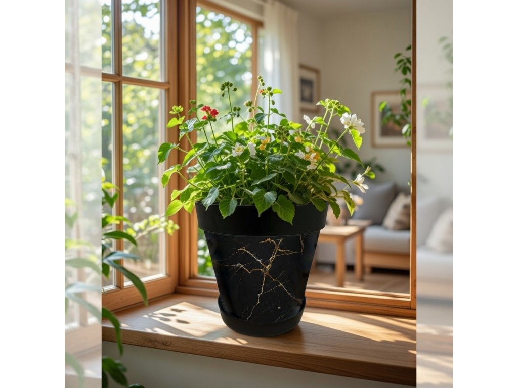 A kaspó tartós műanyagból készül, könnyű, mégis strapabíró, így egyszerűen mozgatható és hosszú távon is megbízható. A márvány mintás felület modern és klasszikus környezetben egyaránt jól mutat.