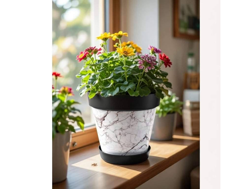 Az 5 literes márvány mintás kaspó alátéttel praktikus és esztétikus megoldás szobanövények, dísznövények vagy kisebb terasznövények számára. A 22×20 cm-es méret megfelelő helyet biztosít a gyökérzet fejlődéséhez, miközben kompakt kialakításának köszönhetően nem foglal sok helyet.