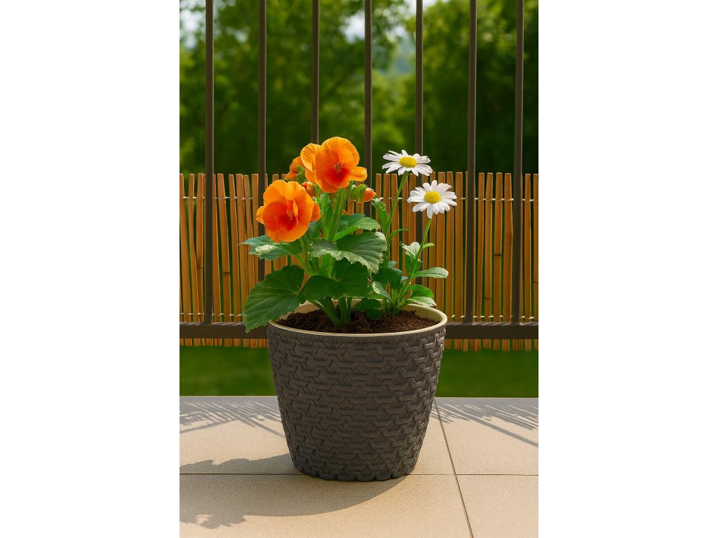 A kötött mintás felület vizuálisan kiemeli a növényt, a műanyag anyag pedig könnyű és praktikus használatot biztosít.