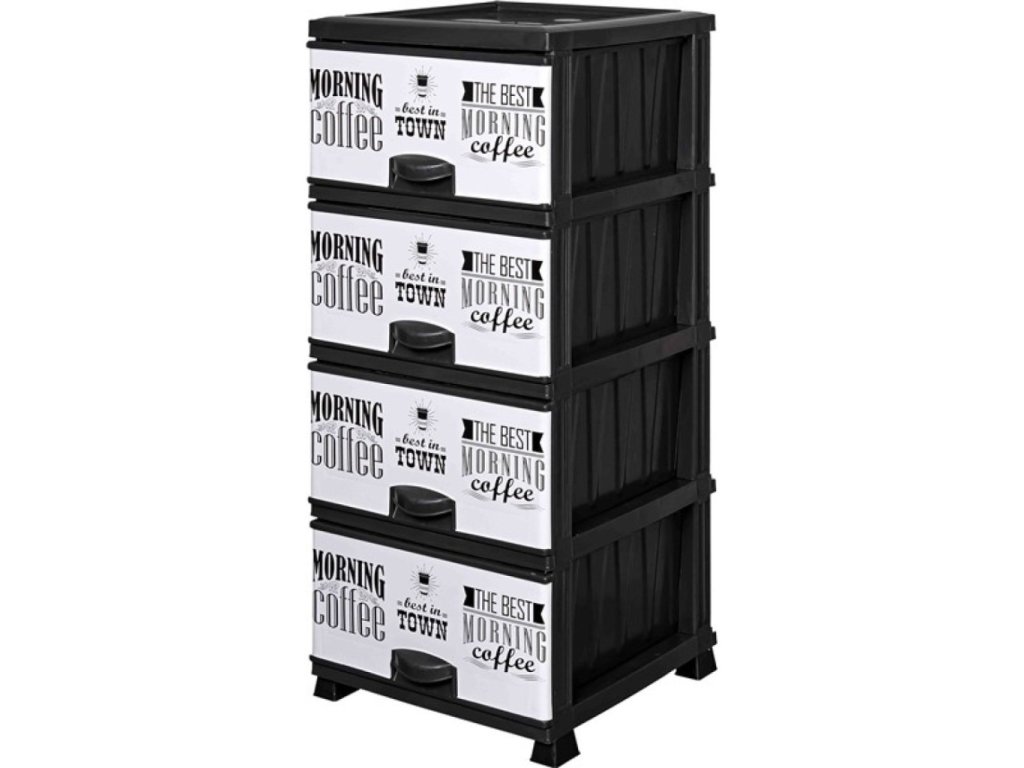 A 4 fiókos dekor komód ideális választás minden otthonba, ahol fontos a praktikus tárolás és az esztétikus megjelenés. Strapabíró műanyagból készült, így könnyű, mégis stabil szerkezetet biztosít. A fiókok különböző mintázatokkal készülnek, így mindenki megtalálhatja a saját stílusához illőt.