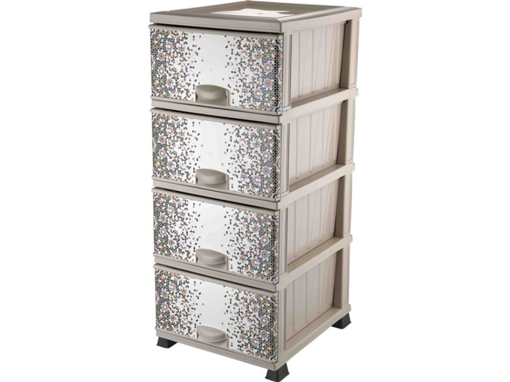 Komód 4 fiókos dekor mintával – többféle színben Strapabíró műanyagból, többféle dekor mintával