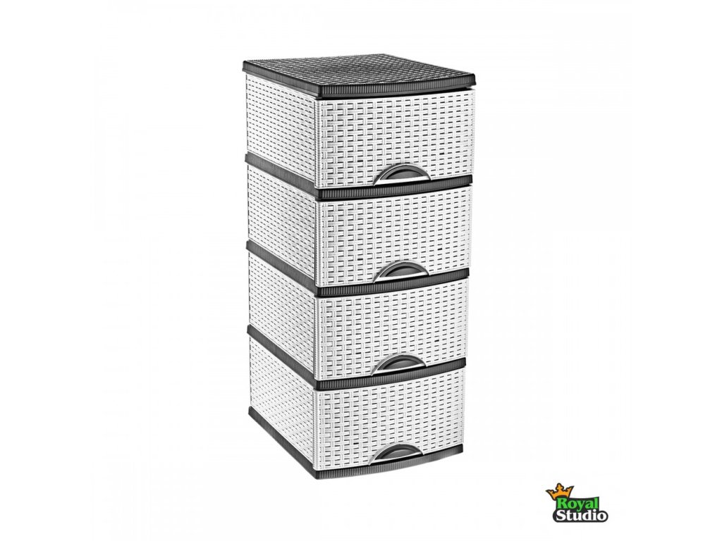 A rattan hatású 4 fiókos komód esztétikus és praktikus tárolási lehetőség minden otthonban. Klasszikus rattan mintázatával bármely szobába jól illeszkedik, miközben nagy belső kapacitással rendelkező fiókokat kínál. A strapabíró műanyag szerkezetnek köszönhetően könnyű, mégis tartós megoldás a mindennapi használatra.