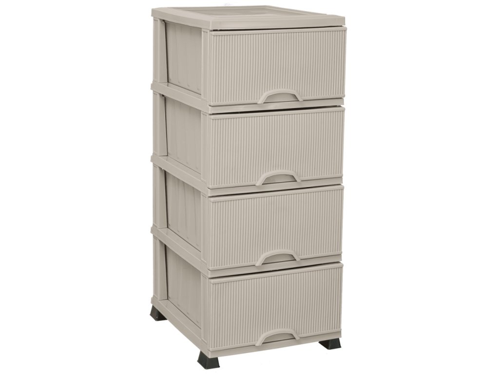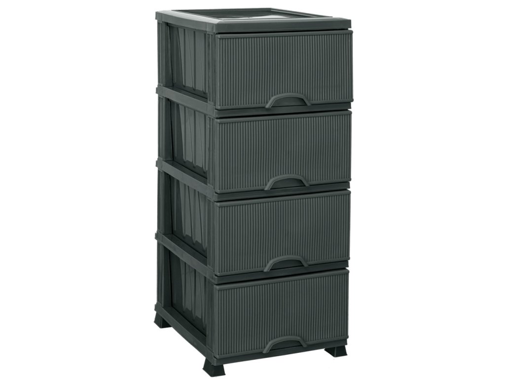 A Nostalgia 4 fiókos komód tökéletes választás otthonod rendezettségének megőrzésére. 37,5x45,5x90 cm-es méretével ideális tárolóhelyet biztosít hálószobában, nappaliban, fürdőszobában vagy akár irodában. Klasszikus bordázott dizájnja elegáns megjelenést kölcsönöz, miközben strapabíró műanyag szerkezete hosszú távon is megbízható használatot garantál.