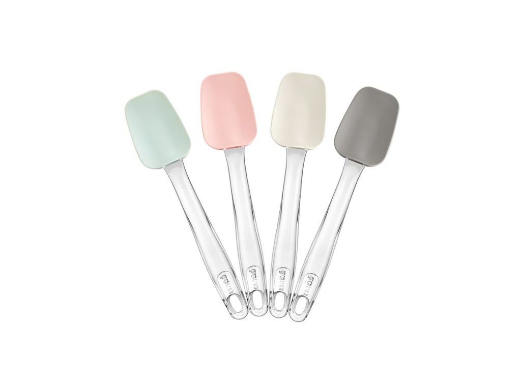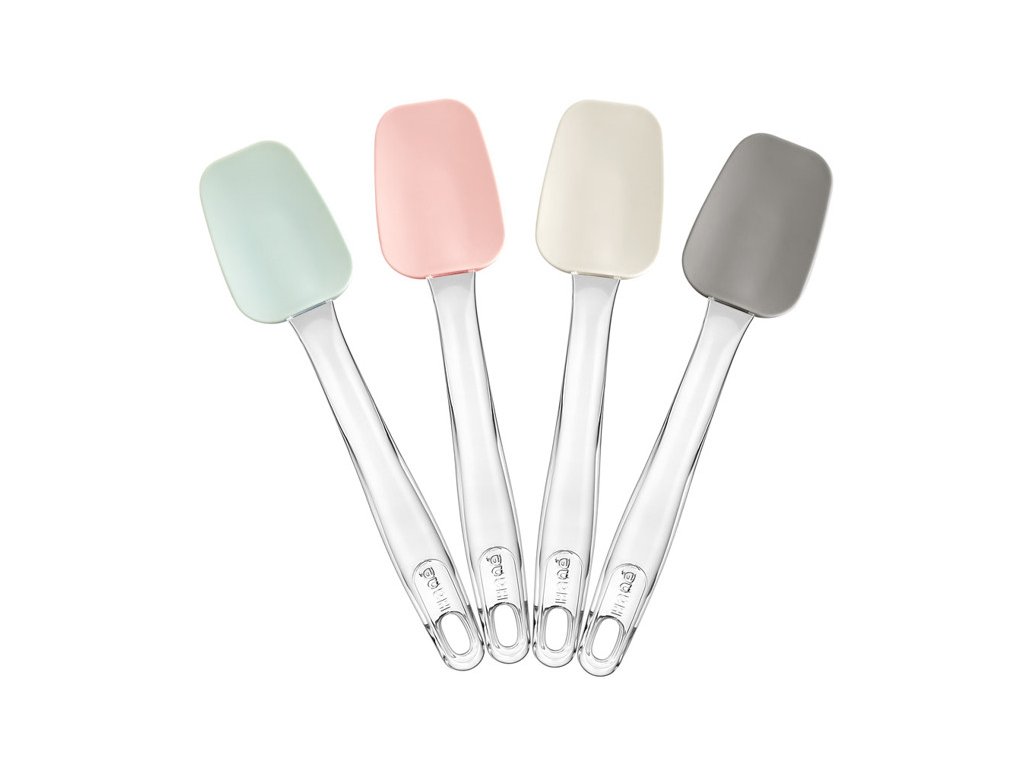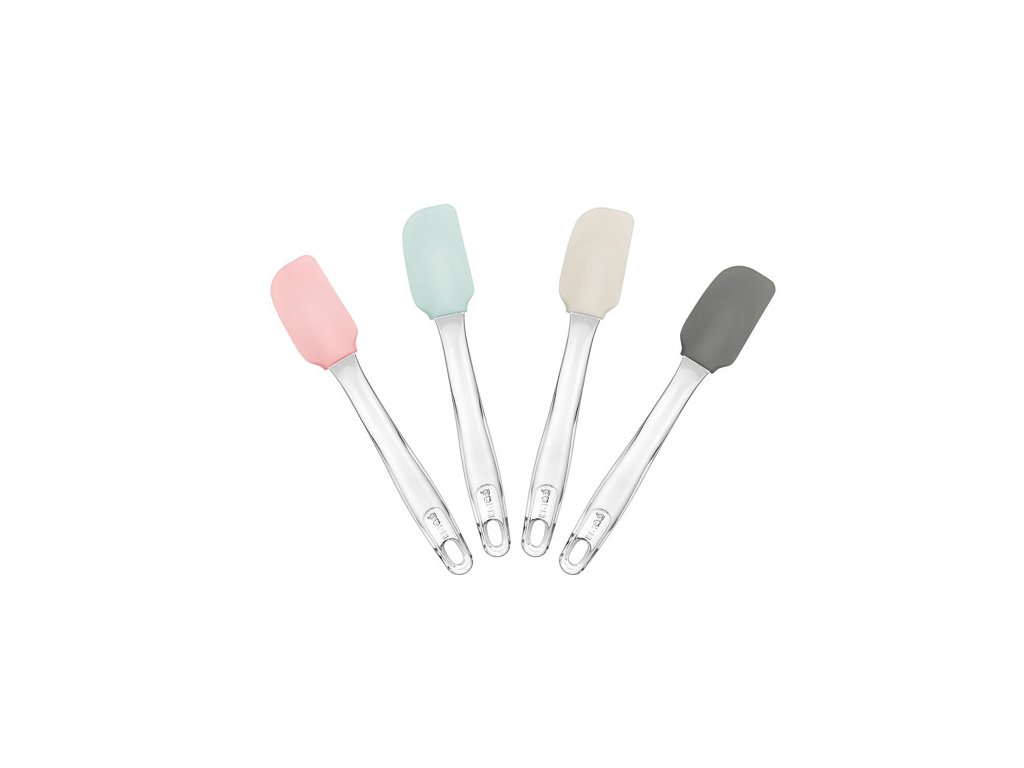 Ez a többféle méretű és színű szilikon spatula kiválóan használható sütéshez, főzéshez, krémek, szószok vagy tészták keveréséhez. A 100% platinum szilikon fej rugalmas, de mégis masszív, így könnyedén követi a tál formáját, miközben nem karcolja az edényeket. Az átlátszó műanyag nyél ergonomikus és jól kézre áll.