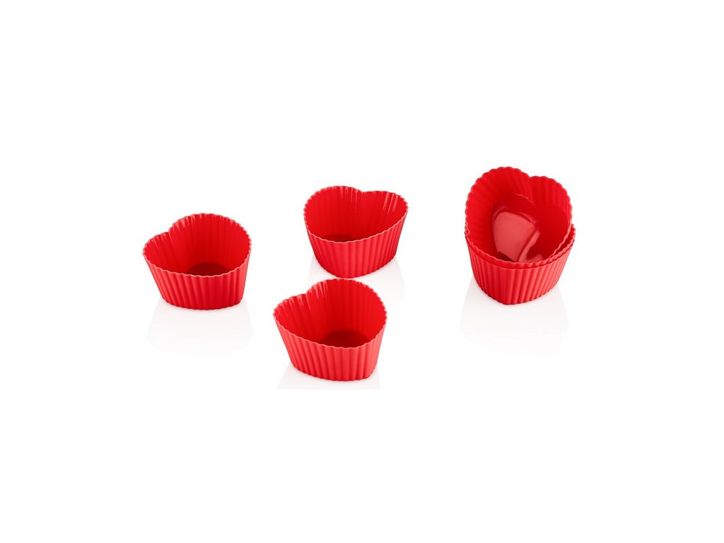 Szilikon szív alakú muffin forma 6db Sütéshez, újrahasználható, piros szín