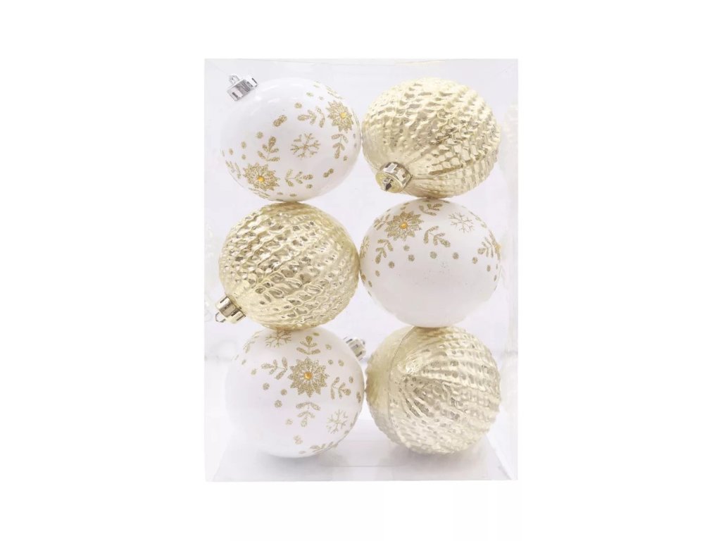 Noelle fehér-arany karácsonyi gömbök – 6 db-os szett #GOLDWHITE# karácsonyi gömb szett