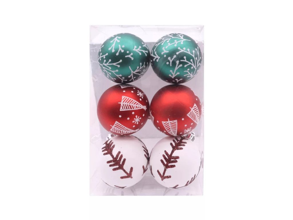 Noelle zöld-piros-fehér mintás karácsonyi gömbök – 6 db-os szett #CLASSICHOLIDAY# karácsonyfadísz kollekció