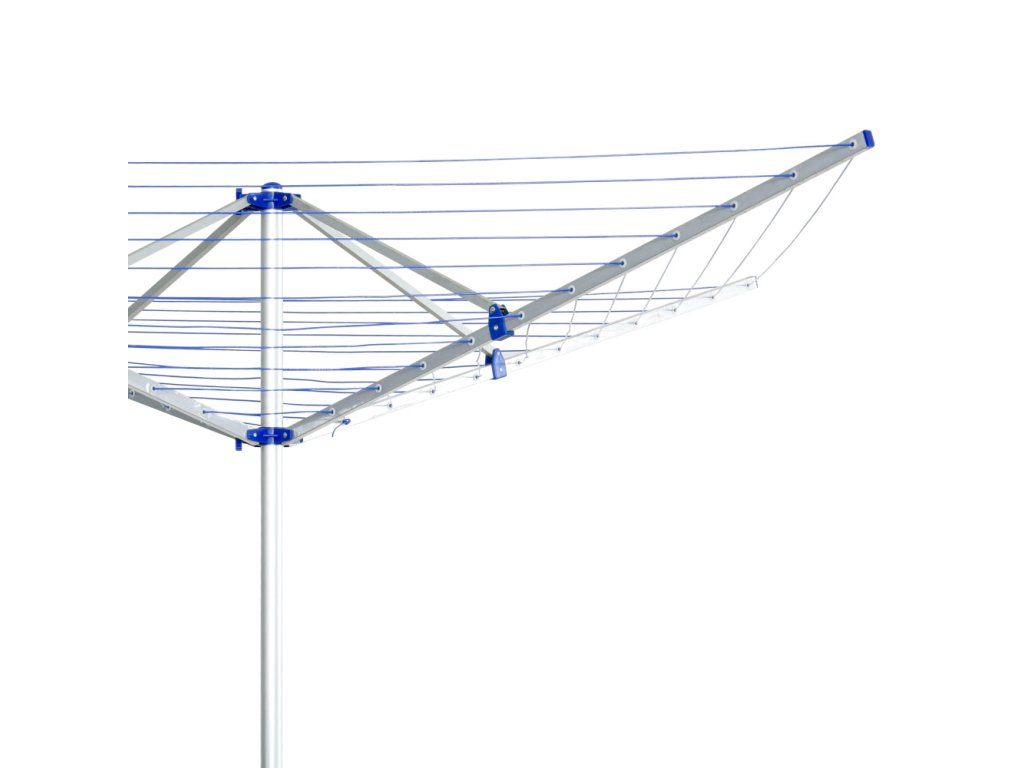 Ez a forgó ruhaszárító összesen 50 méter szárítófelületet kínál, amely elegendő egy nagyobb háztartás napi mosásához is.