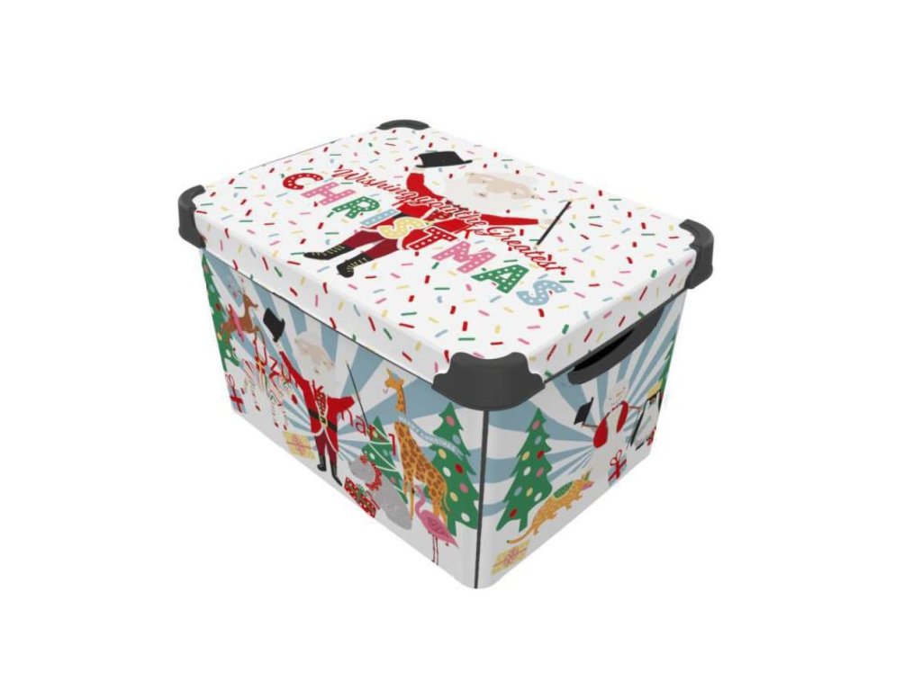 Karácsonyi mintás tároló doboz 20L – 24x30x41 cm #XMASBOX20L# karácsonyi tároló doboz ajándékokhoz és dekorációhoz, 20 literes