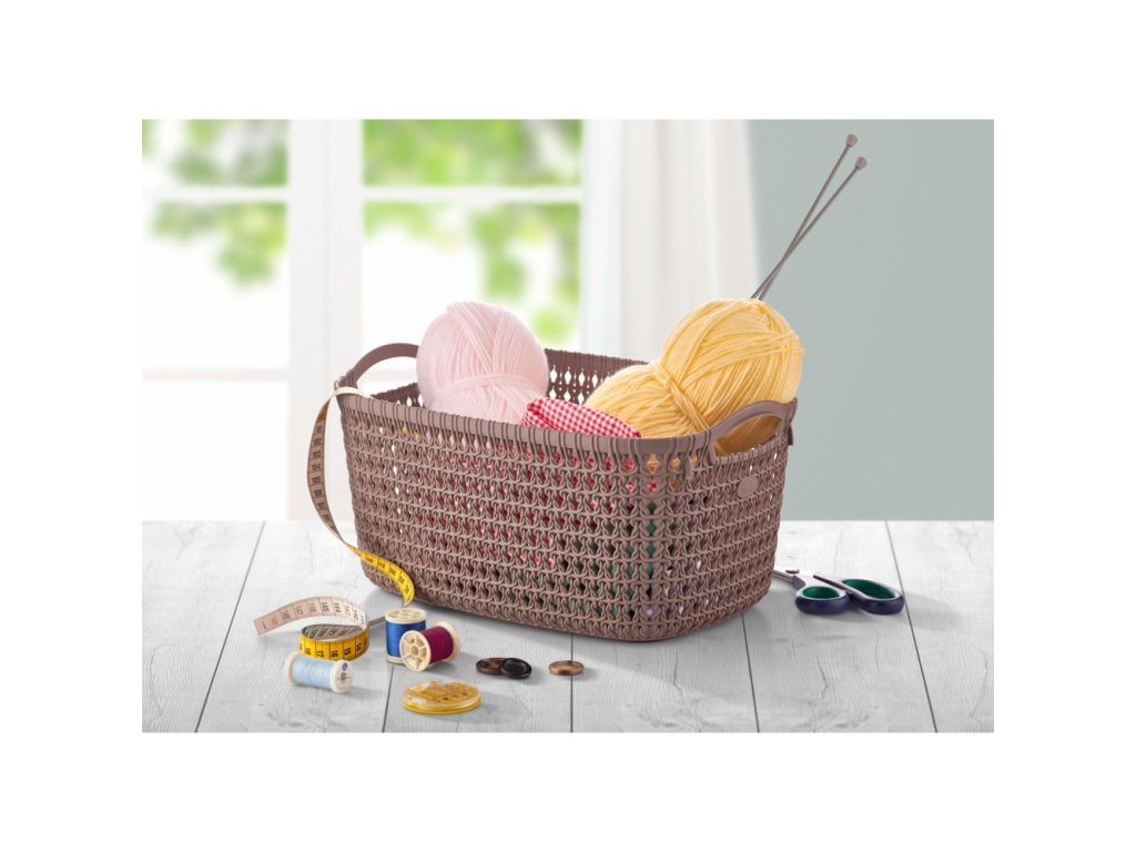 A kötött mintás tároló kosár stílusos és praktikus kiegészítője minden otthonnak. Könnyű, mégis erős anyagból készült, amely hosszú élettartamot garantál. Modern kötött mintás felülete dekoratív megjelenést kölcsönöz, így nemcsak tárolásra, hanem díszítőelemnek is kiváló. A két erős fülnek köszönhetően kényelmesen mozgatható, legyen szó gyerekszobáról, fürdőről vagy nappaliról. Sokoldalúan használható: játékok, textíliák, fonalak, kézimunka eszközök, vagy akár konyhai alapanyagok rendszerezésére is alkalmas. Többféle színben elérhető, így mindenki megtalálhatja a lakásához illőt.