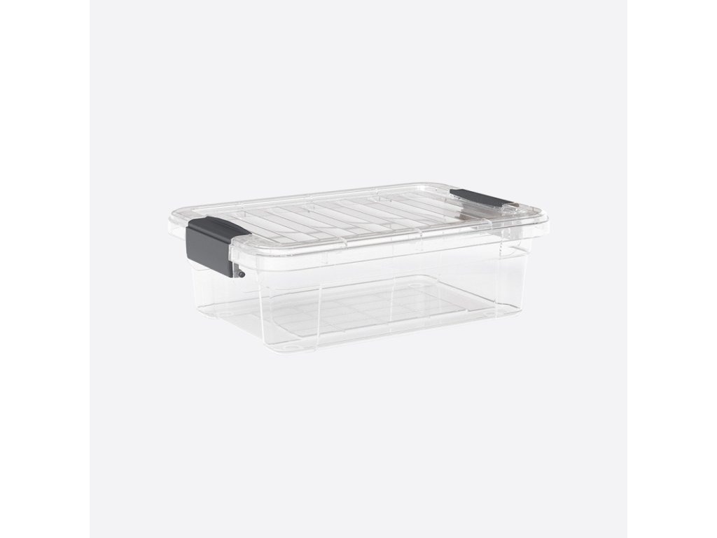 Tárolódoboz tetővel – átlátszó Lock&Keep (több méret) Strapabíró, átlátszó műanyag doboz zárófüles tetővel, háztartási, hobbi és sporteszközök rendszerezéséhez