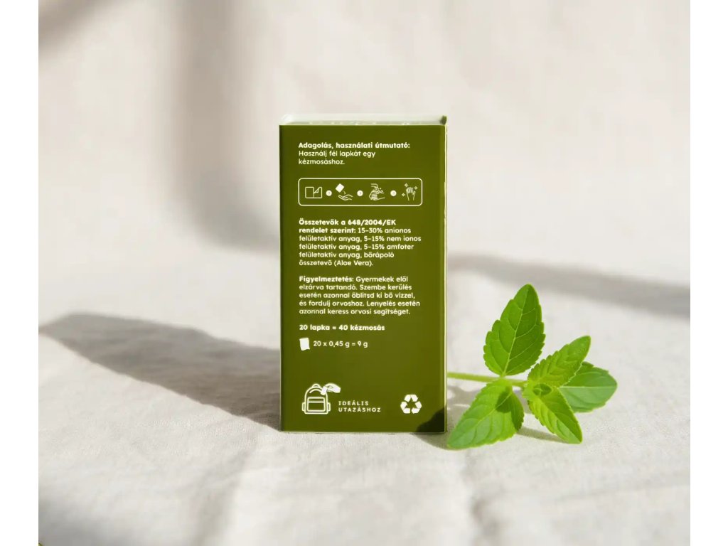 Mini kézmosó lapka utazáshoz – citromverbéna illattal Utazó kiszerelés, vízben oldódó, környezetbarát kézmosó lapkák